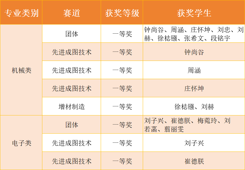 我校學(xué)子獲得8項(xiàng)全國(guó)一等獎(jiǎng),分別是:機(jī)械類參賽代表隊(duì)(團(tuán)隊(duì)成員:鐘尚谷、周涵、莊懷坤、劉忠、劉赫、徐梽鏹、張希文、段銘宇)獲團(tuán)體一等獎(jiǎng),鐘尚谷、周涵、莊懷坤獲機(jī)械類比賽先進(jìn)成圖技術(shù)賽道一等獎(jiǎng),徐梽鏹、劉赫獲機(jī)械類比賽增材制造賽道一等獎(jiǎng),電子類參賽代表隊(duì)(團(tuán)隊(duì)成員:劉子興、崔德朕、梅菀玲、劉若菡、翦麗雯)獲團(tuán)體一等獎(jiǎng),劉子興、崔德朕獲電子類比賽先進(jìn)成圖技術(shù)賽道一等獎(jiǎng)。